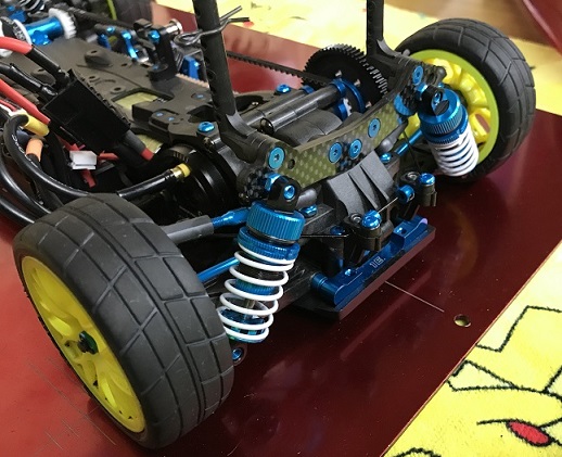 また、純正ではTRFショートダンパーが装備されているみたい。TB-04で採用された扱いにくい中途半端なダンパーですね。TA06-Rも使っていたのか。