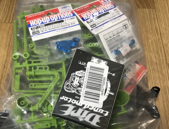 せっかくいただいたのでちょっとだけ改造して4駆に。タミグラコミカルクラスに参加しても負けない車を作ります。