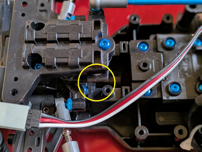 ステアリングロッドの取り付け方法も変更、サーボ側を下から取り付けるようにしました。ステアリング側は無理。