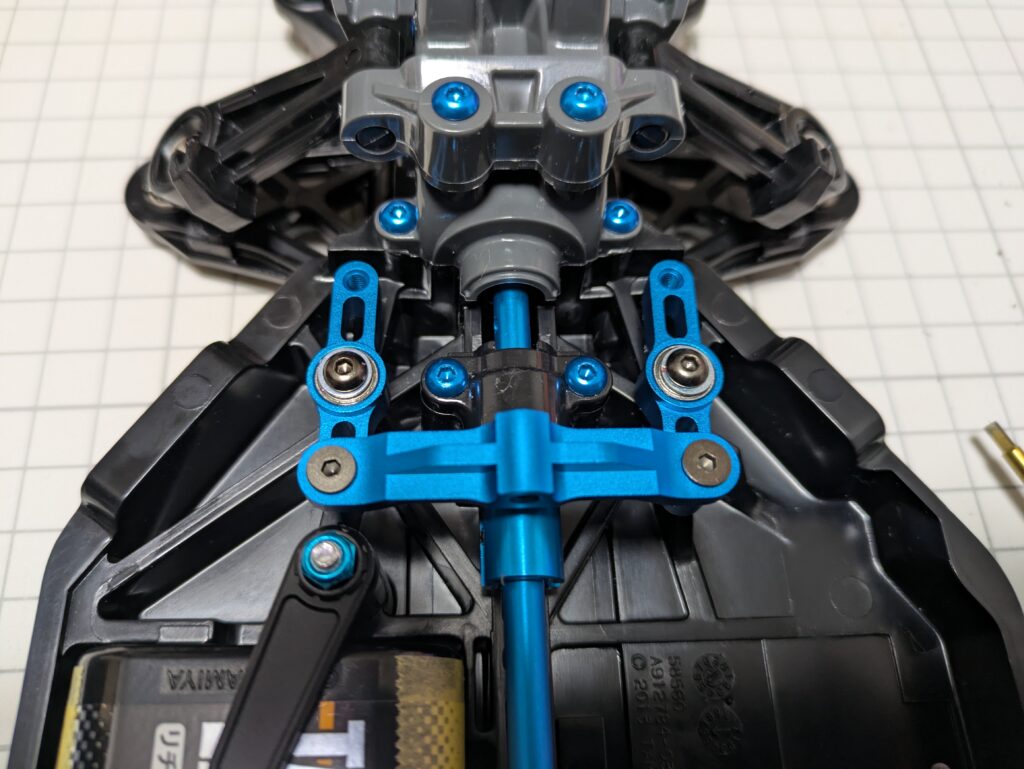 ダンパー4本のうち2本だけ、ダンパーシャフトに2mmスペーサー入れます。