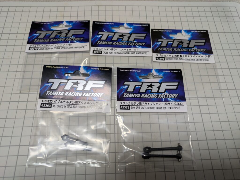 ダブルカルダンにしたから速くなるか、言われるとどうだろうか、て感じだけど、曲がらないタミチャレタイヤ使う場合は舵角大きくするし、そうなるとダブルカルダンは絶対有利になるに決まってる!