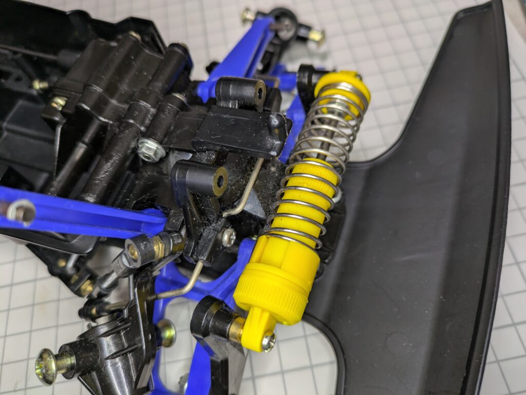 アッパーアームはどうしよう?現状樹脂パーツだけどスコーチャーはターンバックル製の調整可能になってるんだよね。正直めんどくさいからキットのままかも。