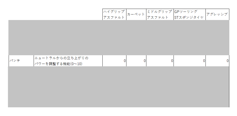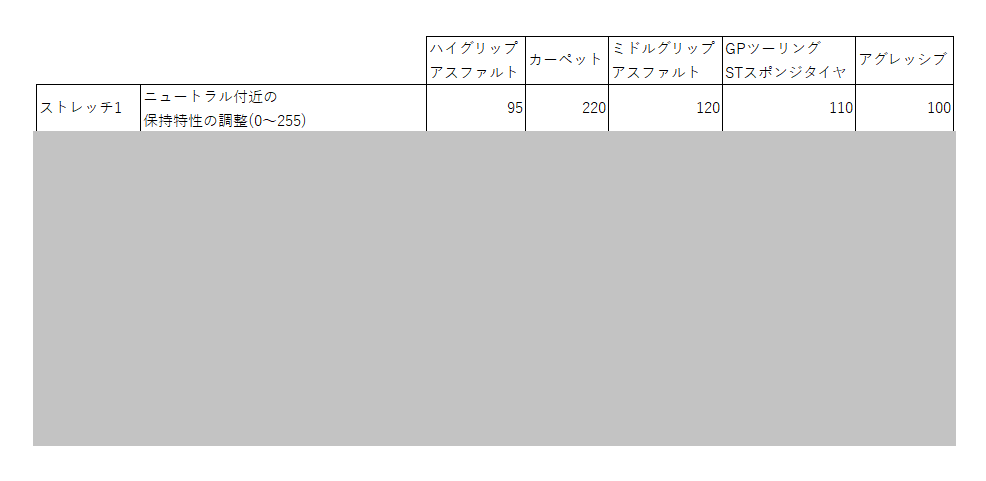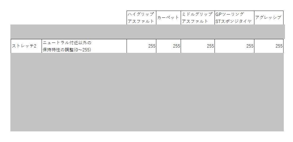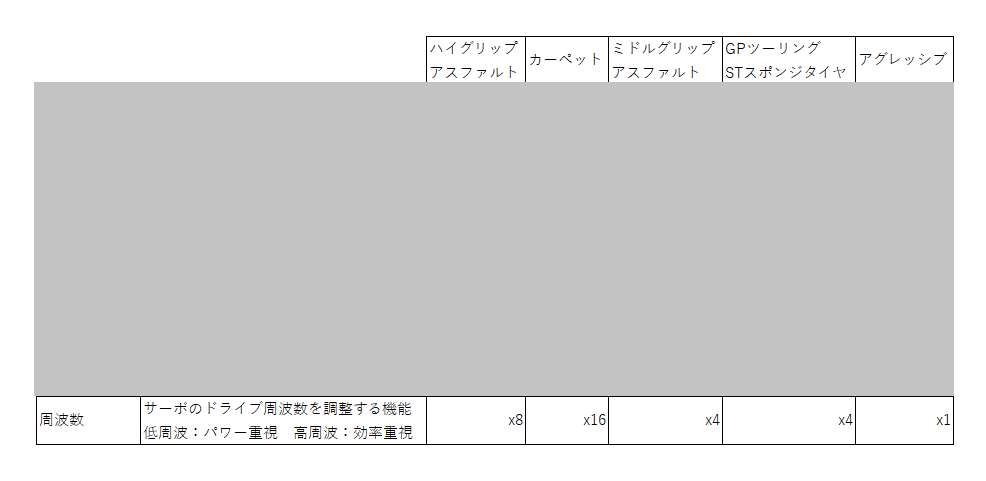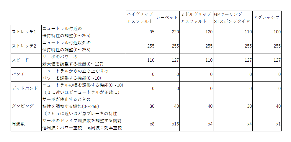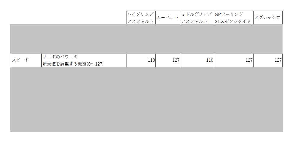 カーペットとGPのスポンジタイヤがMAXの127なんだけど、グリップが良い状況ならパワーを強くした方がいい、て読めますね。